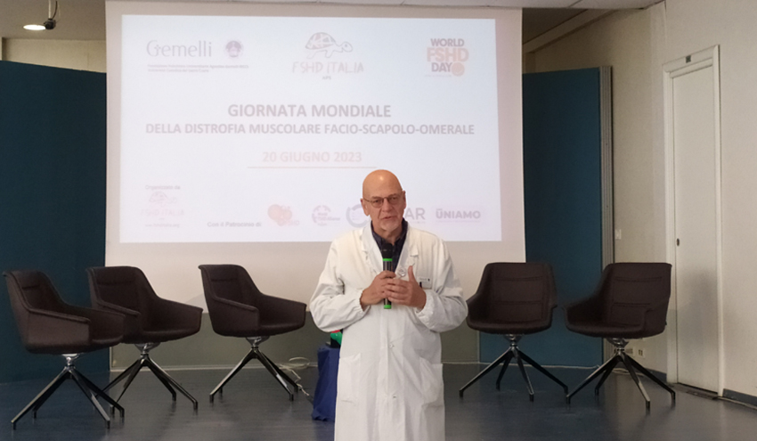 In occasione della Giornata Mondiale dedicata all’FSHD – Distrofia Facio-Scapolo-Omerale, martedì 20 giugno 2023 l’Associazione FSHD Italia APS ha organizzato presso la Hall del Policlinico Universitario Agostino Gemelli IRCCS, una giornata di approfondimento su questa malattia genetica suddivisa in tre sessioni.