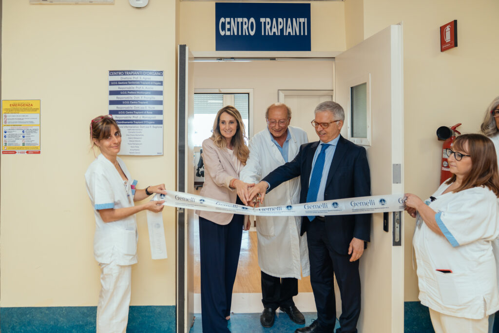 Nuovi spazi per il Centro Trapianti d’Organo del Policlinico Universitario A. Gemelli IRCCS inaugurati ieri pomeriggio, lunedì 14 luglio, presso il 9° piano ALA B. Si tratta di un ampliamento e di una ristrutturazione che ha l’obiettivo di migliorare l’attività trapiantologica del Policlinico. La cerimonia ha visto la partecipazione di rappresentanti istituzionali e accademici del Policlinico Gemelli e dell’Università Cattolica, tra cui il Presidente Daniele Franco, il Direttore Generale Daniele Piacentini, il Direttore Scientifico Antonio Gasbarrini, il Vicepresidente Giuseppe Fioroni, il Direttore del Dipartimento Scienze Mediche e Chirurgiche Sergio Alfieri e il Preside della Facoltà di Medicina e Chirurgia Alessandro Sgambato. È intervenuto il direttore del Centro Regionale Trapianti del Lazio Mariano Feccia.