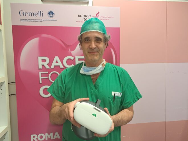 “Il successo di questo caso – commenta il professor Franceschini – ci ha portati a pensare che potremmo integrare stabilmente la realtà virtuale nei nostri percorsi di cura. Non solo chirurgici, ma in occasione di procedure diagnostiche invasive e spesso ansiogene, come le agobiopsie. L’obiettivo è ridurre lo stress della paziente, migliorare la sua esperienza e favorire l’aderenza alle terapie e alle procedure diagnostiche. Questa innovazione si inserisce peraltro in un approccio più ampio, già consolidato presso la Senologia del Gemelli, che punta a prendersi cura della persona e non solo della malattia. È quello che offriamo da anni con le terapie integrate. Da noi, accanto alle terapie tradizionali, trovano spazio il supporto psico-oncologico, l’agopuntura per gestire gli effetti collaterali (ad esempio delle terapie ormonali) e tanti percorsi integrati di accompagnamento. In questo contesto, anche la realtà virtuale può diventare un nuovo strumento di cura emotiva capace di intervenire in maniera risolutiva proprio nei momenti di maggiore fragilità”.