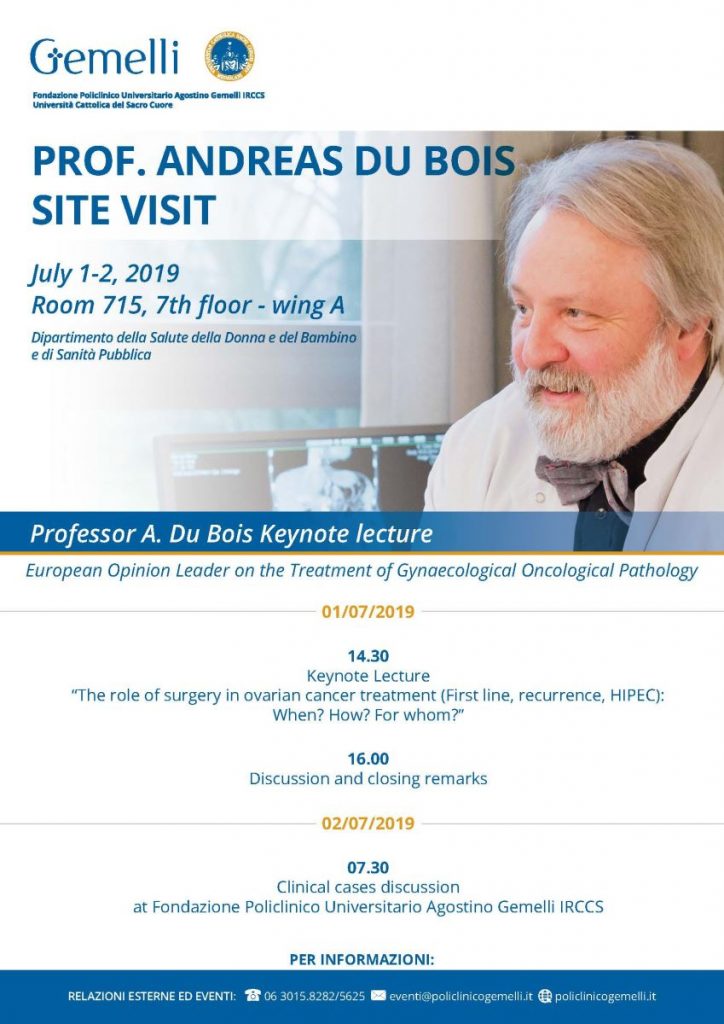 Al Gemelli la Lecture di Andreas Du Bois, big europeo in ginecologia oncologica