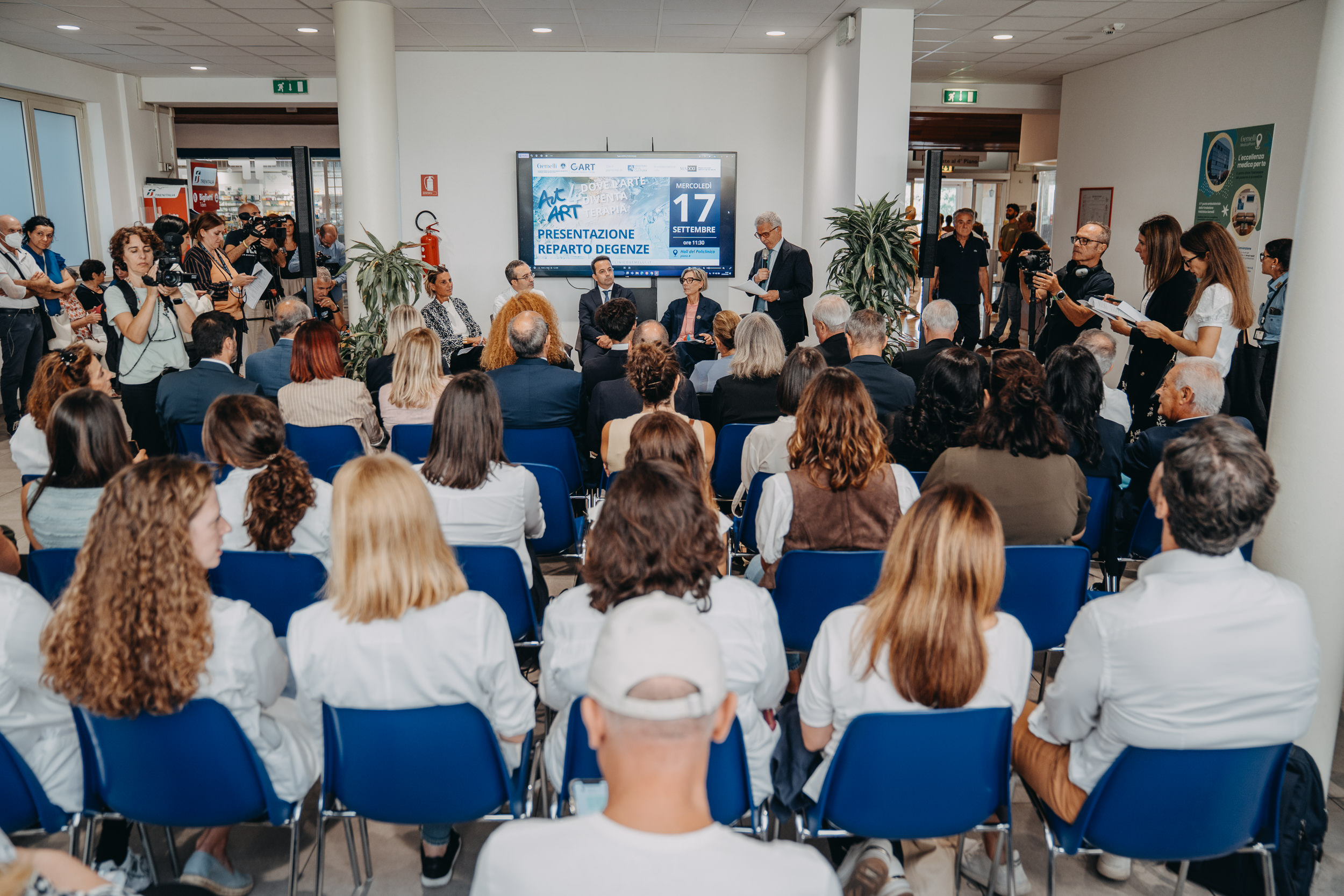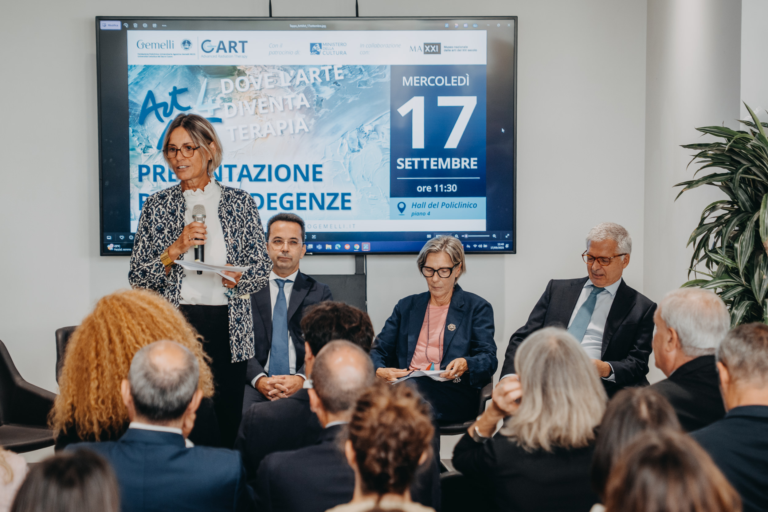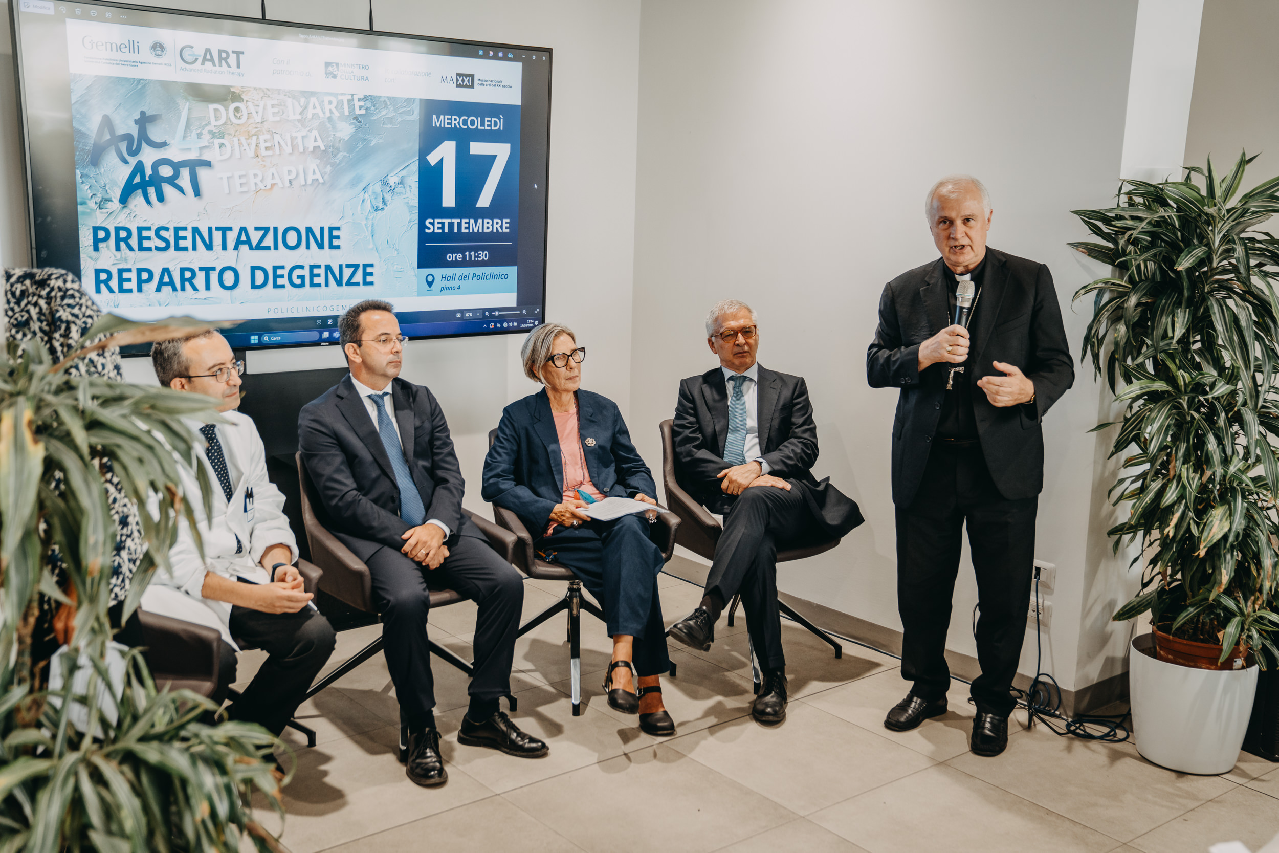 All’evento di presentazione sono intervenuti il Capo del Gabinetto del Ministro della Cultura Valentina Gemignani, il Capo Dipartimento della prevenzione del Ministero della Salute Maria Rosaria Campitiello e la Presidente del MAXXI Maria Emanuela Bruni. A fare gli onori di casa il Presidente della Fondazione Policlinico Universitario Agostino Gemelli IRCCS Daniele Franco, il Direttore Generale del Policlinico Universitario A. Gemelli IRCCS Daniele Piacentini, il Preside della Facoltà di Medicina e chirurgia dell’Università Cattolica del Sacro Cuore Alessandro Sgambato.