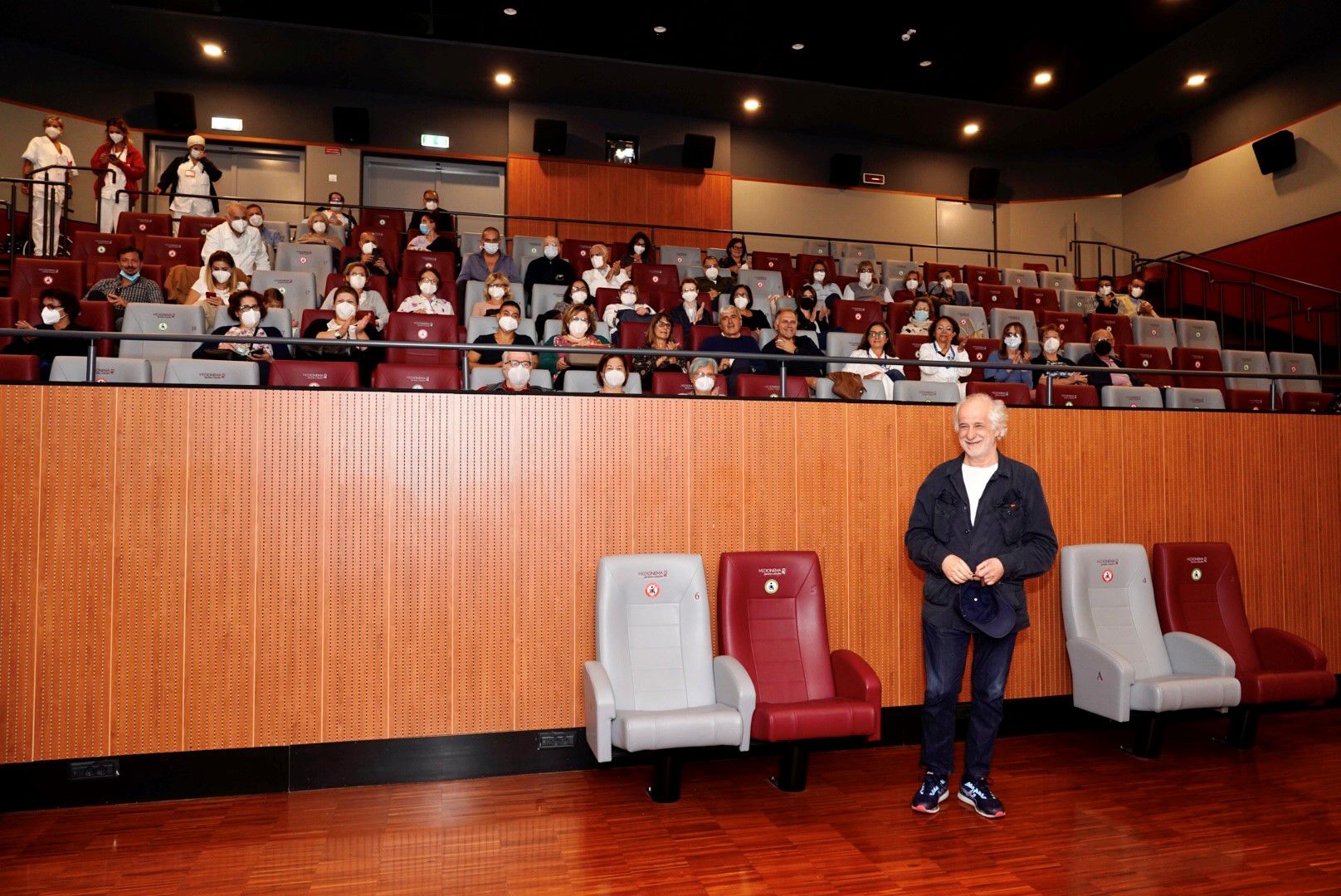 Servillo ha voluto donare a pazienti, medici e operatori sanitari, presenti in gran numero nella sala, questo evento straordinario, all’interno della collaborazione con la Festa del Cinema di Roma, giunta alla 17° edizione.