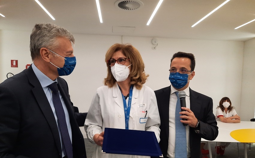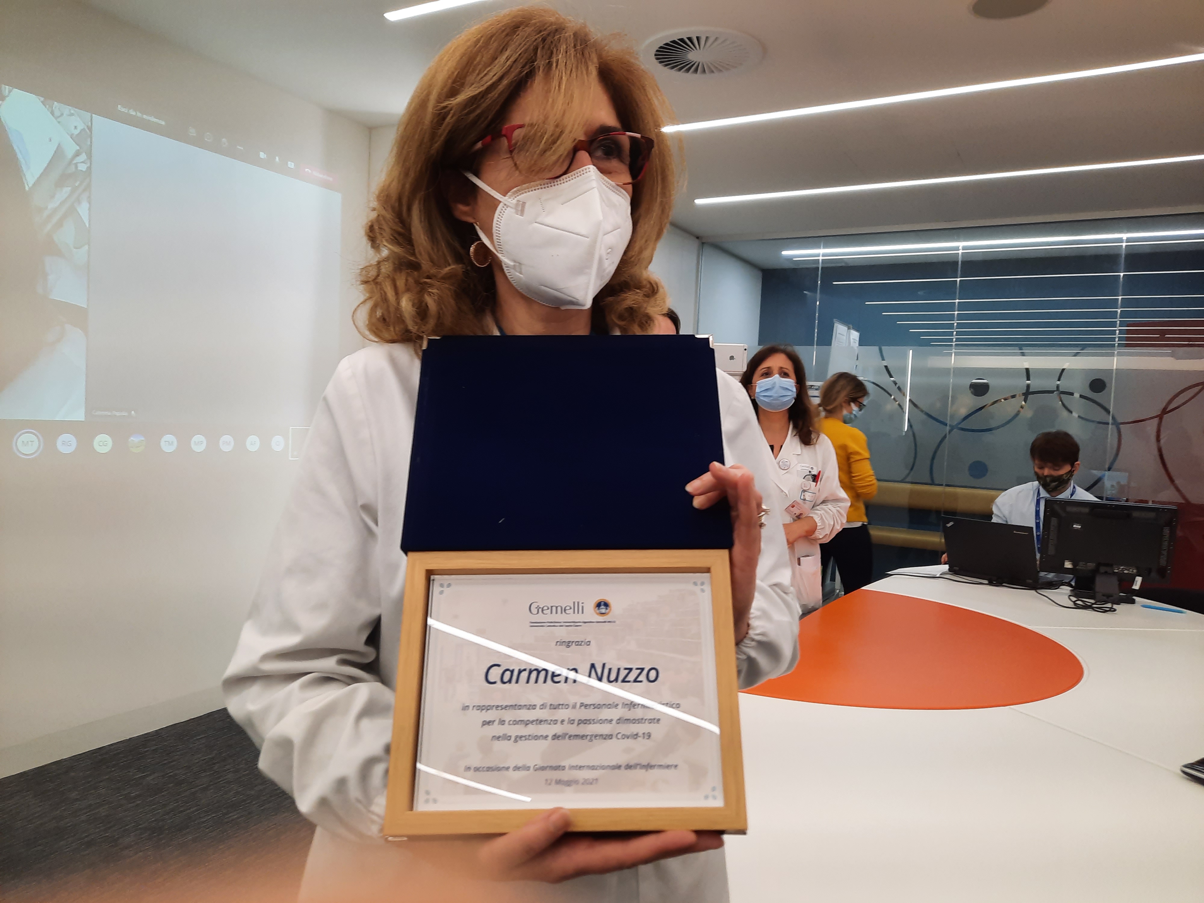 E la consegna di una targa per sottolineare le qualità professionali e l’abnegazione degli infermieri del Gemelli nell’assistere i malati di Covid-19 nell’anno della pandemia.