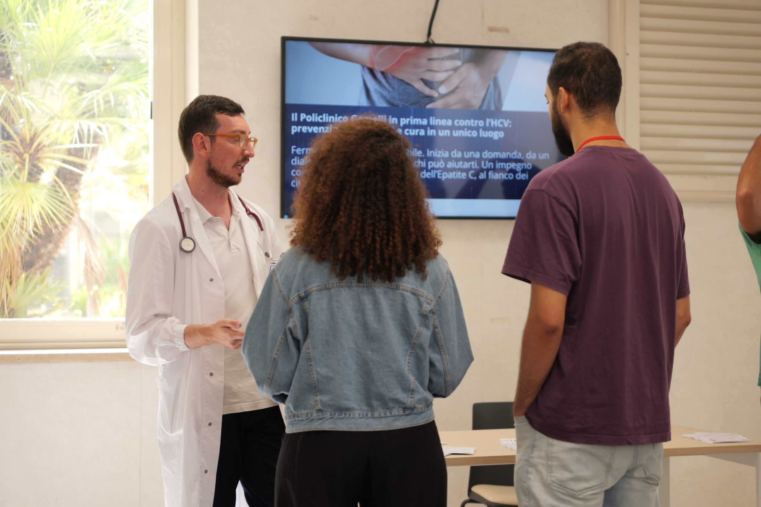 Presso l’ingresso del Policlinico, al 4° piano, è stata allestita una postazione informativa dedicata dove il team degli epatologi del Centro Malattie Apparato Digerente (CEMAD https://www.cemadgemelli.it/) ha fornito materiale informativo con contenuti testuali di approfondimento proiettati su uno schermo e finalizzati a chiarire l’importanza della prevenzione e della lotta contro le epatiti. Un’ulteriore postazione è stata allestita anche nella sala prelievi per massimizzare la portata dell’iniziativa.