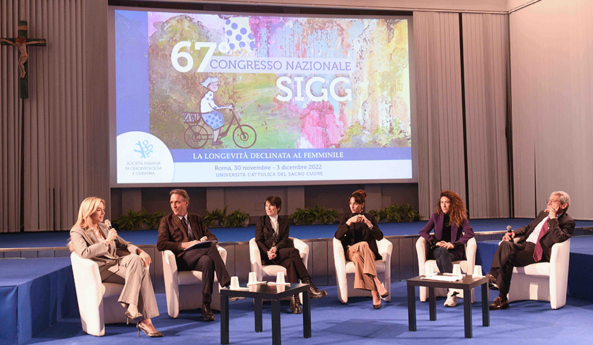 Il mondo della geriatria si è riunito all’Università Cattolica, nel Campus di Roma, per il 67esimo Congresso nazionale della Società Italiana di Gerontologia e Geriatria (SIGG) che si svolge fino a sabato 3 dicembre. Medici da tutta Italia, ma anche studenti e specializzandi della Facoltà di Medicina della Cattolica, si sono riuniti per l’apertura della seduta plenaria che ha visto protagonista il geriatra della Cattolica, Roberto Bernabei, presidente di Italia Longeva, che ha raccontato come è nata e si è sviluppata la geriatria negli ultimi 50 anni. Grazie al contributo del suo “maestro” Pierugo Carbonin, ideatore della moderna assistenza geriatrica, l’Università Cattolica e il Policlinico Gemelli hanno fatto scuola, innovando la disciplina e affermandola a livello internazionale. A proseguire la strada tracciata e sviluppata dal professor Bernabei c’è ora il professor Francesco Landi, Ordinario di Medicina Interna all’Università Cattolica e direttore della Uoc di Medicina Interna Geriatrica della Fondazione Policlinico Gemelli IRCCS, che nella tavola rotonda di apertura del Congresso, è intervenuto alla presenza di quattro testimonial d’eccezione per sottolineare l’importanza dell’attività fisica anche nella terza e quarta età: le campionesse olimpiche Manuela Di Centa, sciatrice fondista, Elisa Di Francisca, schermitrice, Antonella Palmisano, marciatrice e Silvia Salis, tiratrice del martello e vicepresidente vicario del Coni.