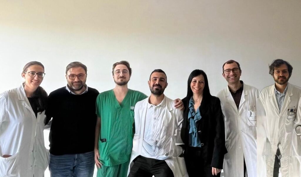 Da sinistra a destra Dott.sa Filomena Fuggetta (tecnico neurofisiopatologia UOC neurochirurgia), Dott. Nicola Montano (neurochirurgo), Dott. Alessandro Izzo (neurochirurgo), Dott. Danilo Genovese (dottorando in neurologia UCSC), Dott.ssa Carla Piano (neurologa), Dott. Francesco Bove (neurologo)