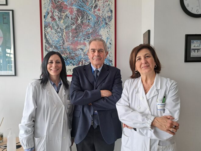 In alto da sinistra a destra dottoressa Carla Piano, professor Paolo Calabresi, professoressa Anna Rita Bentivoglio
