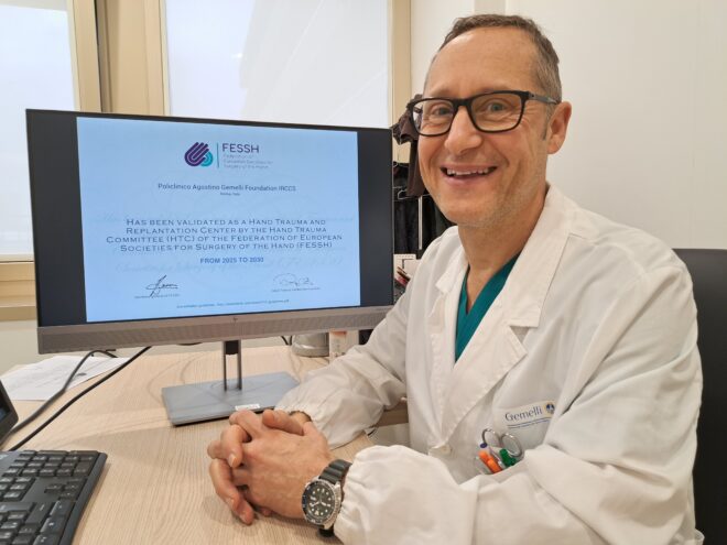 La UOC di Ortopedia e Chirurgia della mano di Fondazione Policlinico Gemelli IRCCS, diretta dal professor Lorenzo Rocchi, ha appena ricevuto il prestigioso ‘diploma’ della Federazione delle Società Europee di Chirurgia della Mano (FESSH), che la riconosce come centro ‘accreditato FESSH’ per i traumi e i reimpianti della mano. Si tratta di una prestigiosa certificazione europea rilasciata solo a centri di riferimento in grado di offrire cure di eccellenza nei traumi della mano. La UOC di Chirurgia della Mano del Gemelli, una delle più grandi d’Italia, entra così nel ristretto novero dei centri italiani in possesso di questo prestigioso ‘diploma’ europeo.