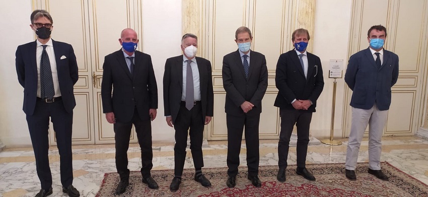 Nella foto da sinistra Marco Elefanti, Salvatore Vizzi, Giovanni Albano, Nello Musumeci, Eugenio Ceglia, Rocco Bellantone, Gianluca Galati.