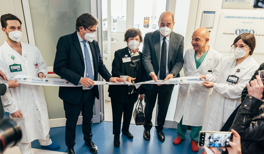 A caccia dei geni delle malattie, grazie a un laboratorio di genomica con apparecchiature di ultima generazione; servirà per curare i pazienti di oggi, gettando le basi per le terapie di domani. A disposizione dei pazienti anche l’analisi genomica al momento tra le più complete (Profilazione Genomica Oncologica FPG500), che si effettua su un pannello di oltre 500 geni. Al taglio del nastro erano presenti il Sottosegretario alla Salute Pierpaolo Sileri, il Presidente della Regione Lazio Nicola Zingaretti, il Direttore Generale della Fondazione Policlinico Universitario Agostino Gemelli IRCCS, professor Marco Elefanti e il Preside della Facoltà di Medicina e Chirurgia dell’Università Cattolica, professor Rocco Bellantone. L’Assistente Ecclesiastico Generale dell’Università Cattolica del Sacro Cuore S.E. Monsignor Claudio Giuliodori ha impartito la benedizione degli ambienti della facility.